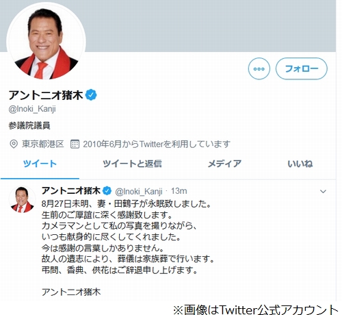 Aug 28, 2019 · "燃える闘魂"ことアントニオ猪木氏(76)の最愛の妻、田鶴子さんが27日に死去した。猪木氏が自身のツイッターで「8月27日未明、妻・田鶴子が.